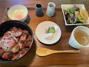 なかでも「ビフテキ丼」は、ジューシーでやわらかなお肉と温泉卵の相性が絶妙で、思わず笑みがこぼれる美味しさ。「湯ノ岳膳」は、小鉢が少しずつ並び、彩りも美しく、一口ごとに楽しみが広がります。