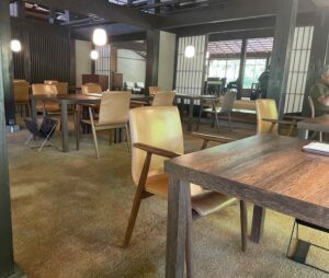 金鱗湖畔の落ち着いた空間で、観光地の賑わいから離れ、静かに食事を楽しめるのが魅力です。店内はすべてテーブル席で、予約も可能。