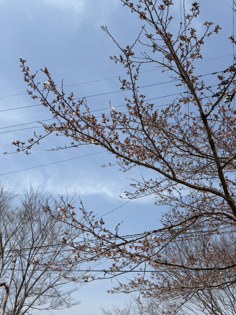 でも日差しのあるところの桜はほんの少しだけ咲いてきました。一分咲きほどでしょうか。
